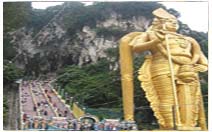 黑风洞是印度教的朝拜圣地是一个石灰岩溶洞群处在丛林掩映的半山腰从山下循272黑级陡峭台阶而上即可到达。